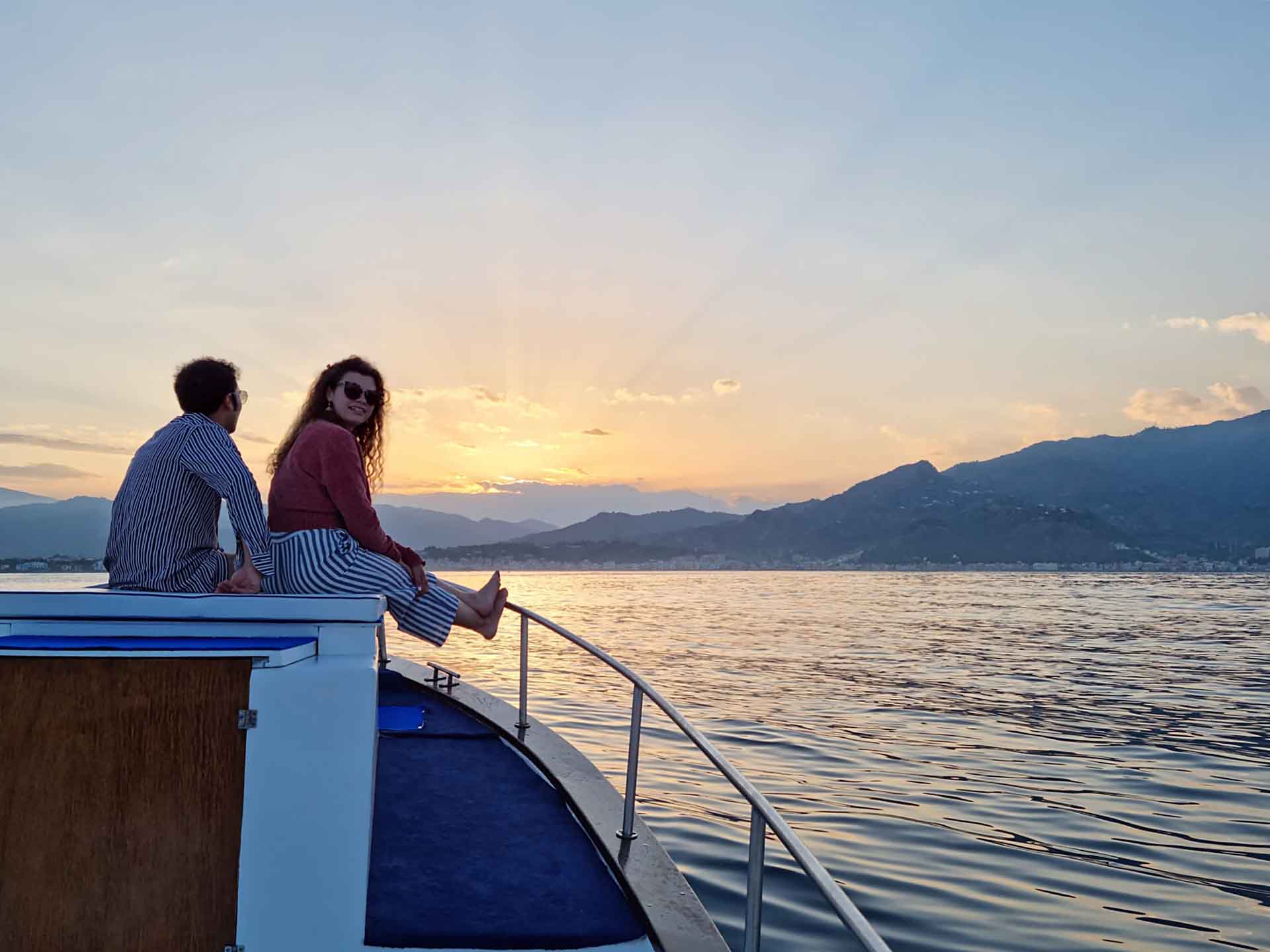 Nella sunset cruise Taormina privata visiterai l’intera costa taorminese e vivrai un suggestivo tramonto in compagnia di chi ami. Con un po’ di fortuna, sarai conquistato/a dalla gioia dei delfini danzanti, mentre sorseggerai il tuo aperitivo.